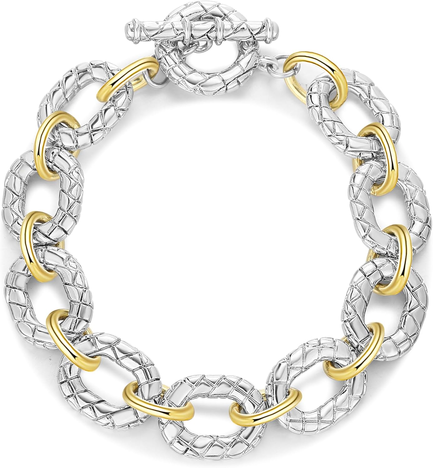 Mytys Two Tone Chain Link Bracelet Italian Designer Inspired Silver Gold Twisted Rope Statement Chunky Bracelets for Women Fashion Jewelry Gift
