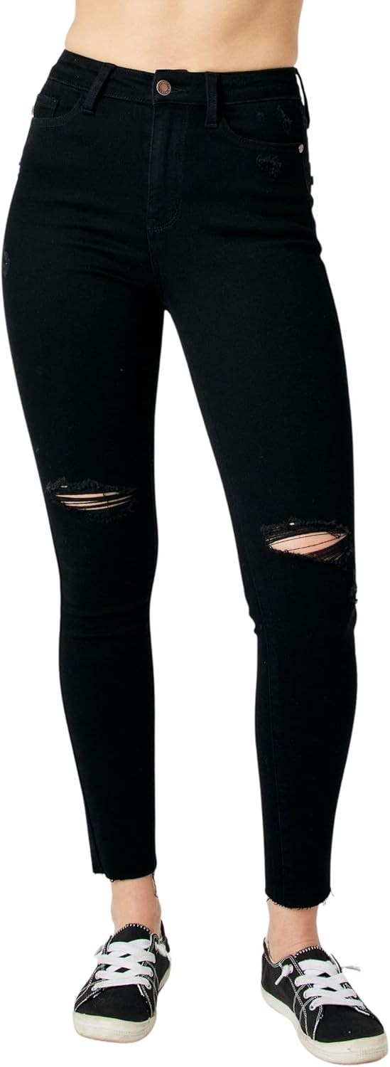 Judy Blue Women's High-Rise Heavy Destroy Raw Hem Skinny Jeans 88562