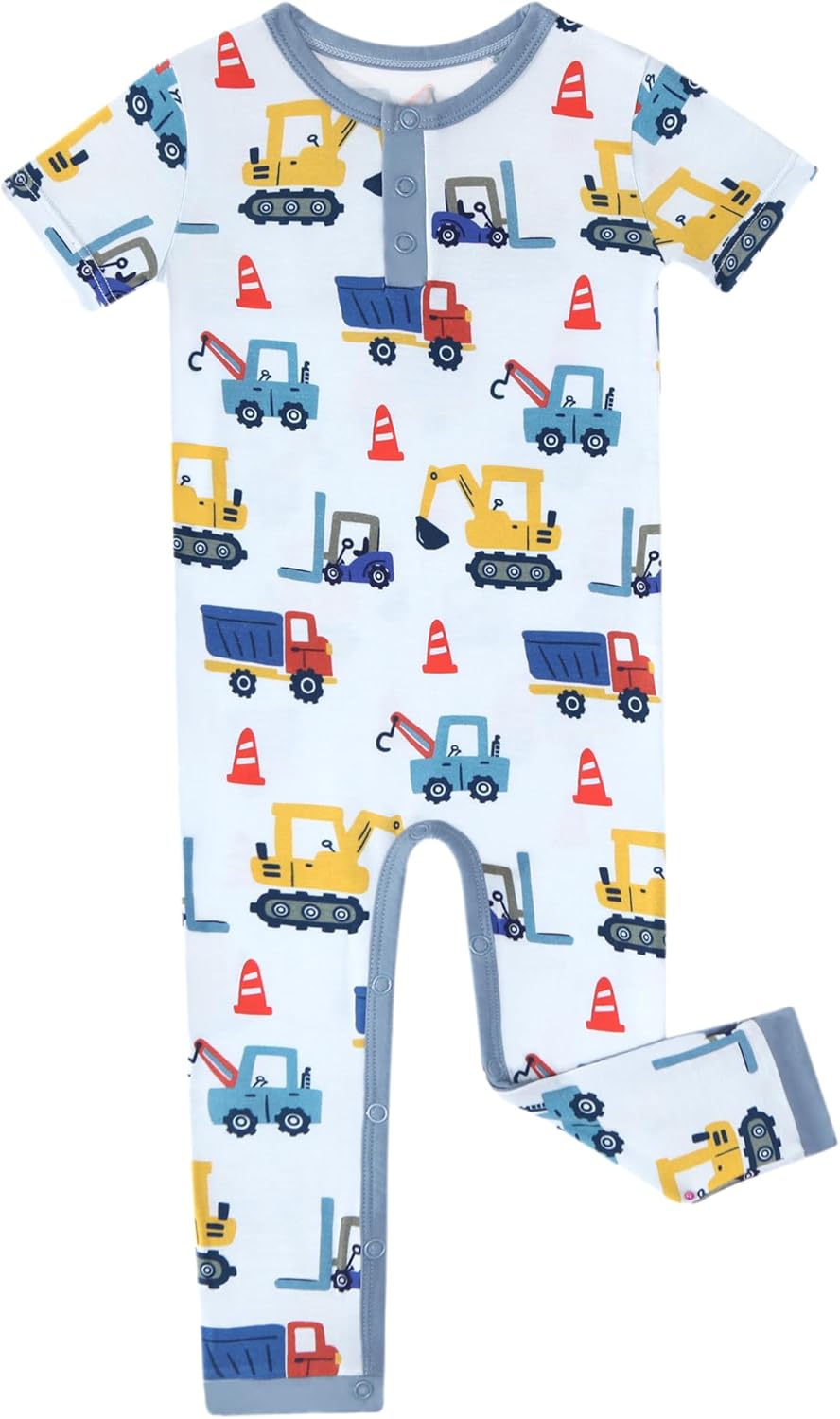 Baby Boys Short Sleeve Rompers Button Bodysuit One-piece Jumpsuit for Newborn, Viscose Made from Bamboo