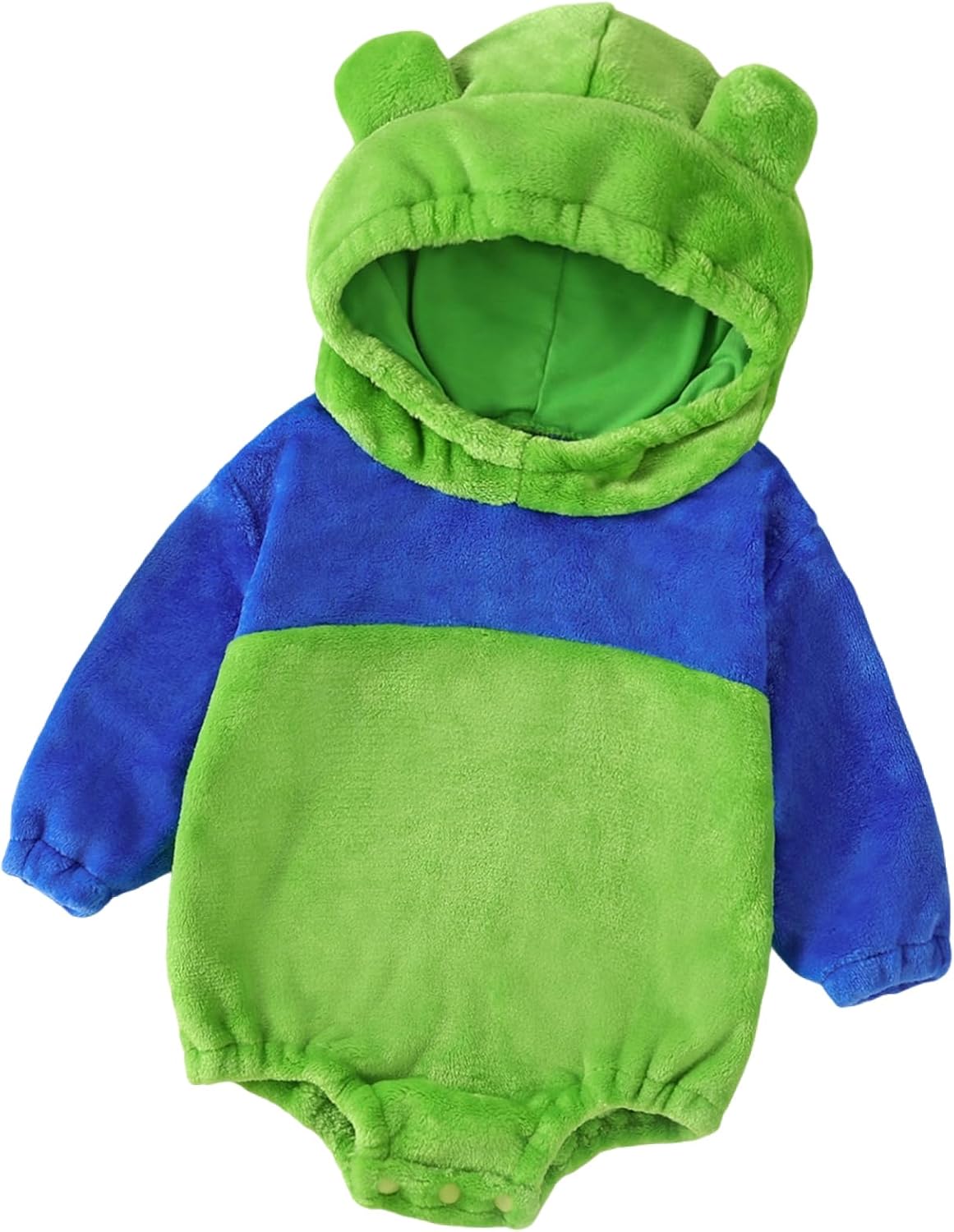 Infant Boy Girl Halloween Animal Costume Newborn Baby Flannel Hooded Rompers Fall Winter Long Sleeve Fleece Bodysuit