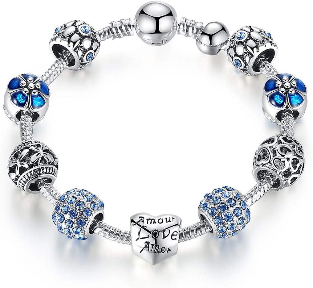 YOUFENG Love Beads Charms Bracelet for Women Snake Chain Unicorn Charm Flower Charms Bracelets Birthday Gifts for Her Amethyst Bracelet