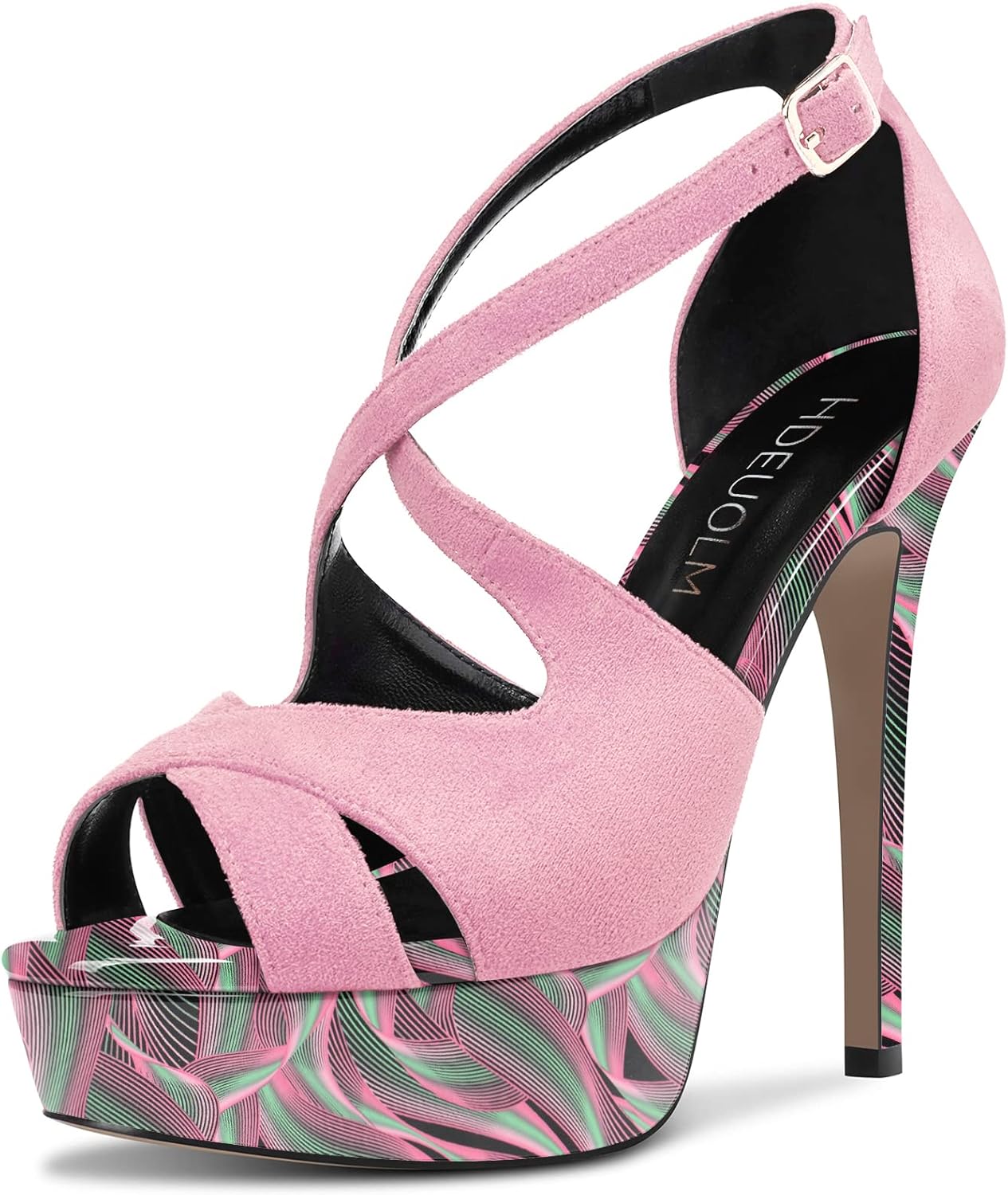 HDEUOLM Women Stiletto High Platform Heel Peep Open Toe Sandals Ankle Strap Wedding Dress 4.7 Inches Heels