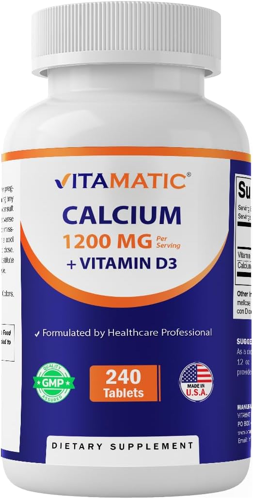 Vitamatic Calcium 1200mg with Vitamin D3 2000 IU (50mcg) – Bone & Immune Support Formula – 240 Tablets – High Absorption Calcium Carbonate with D3 – Non-GMO, Gluten-Free