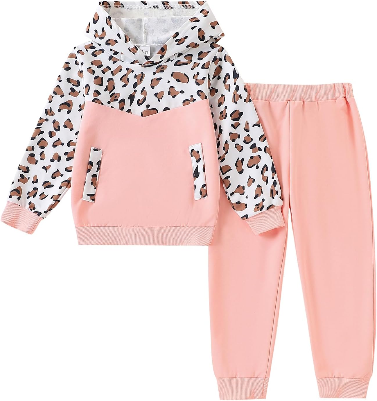 Toddler Kid Girls Clothes Colorblock Hoodie Leopard Print Sweatsuits Top 2PC Fall Outfit Set