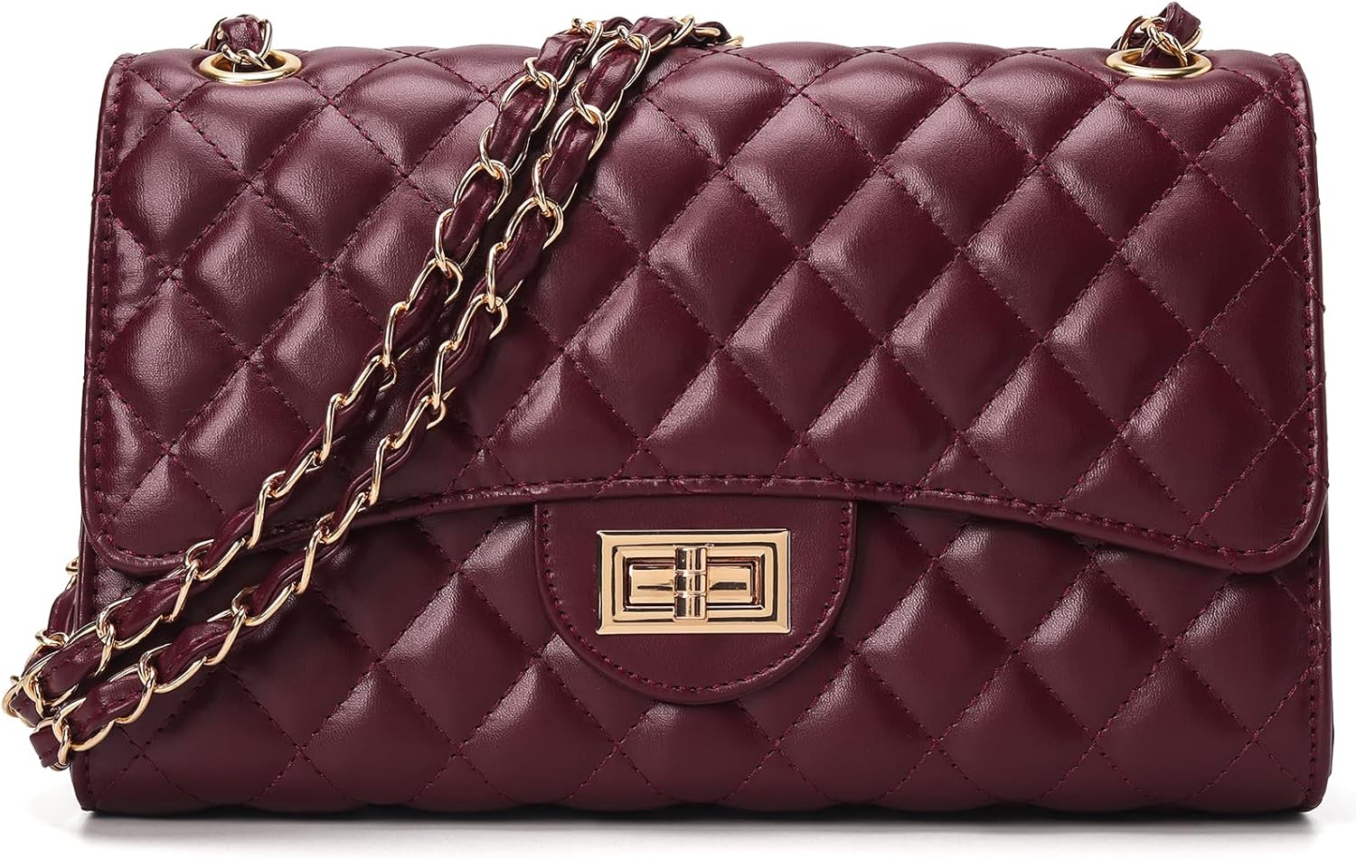 Quilted Leather Crossbody Bags for Women Trendy Ladies Shoulder Purse Satchel HandBag with Chain Strap