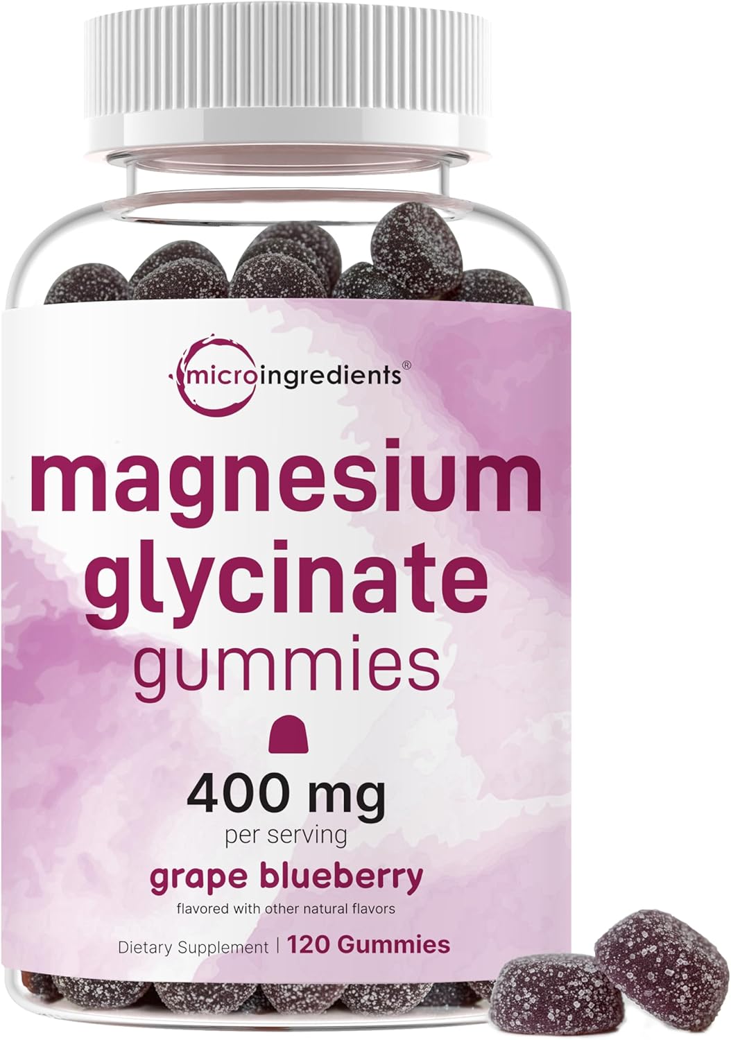 - Micro Ingredients offers extra strength 400mg magnesium glycinate gummies in a natural, sweet grape blueberry flavor, delivering a gentle and delicious way to support calmness, heart health, bone strength, muscles, and mood.