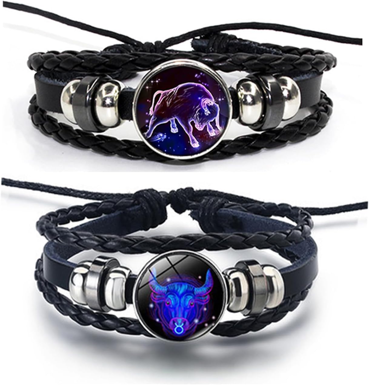 Zodiac Signs Spirit Bracelet for Women Men Multilayer Constellation Leather Wrap Bracelet Couple BFF Bracelets Birthday Gift 2Pcs Set