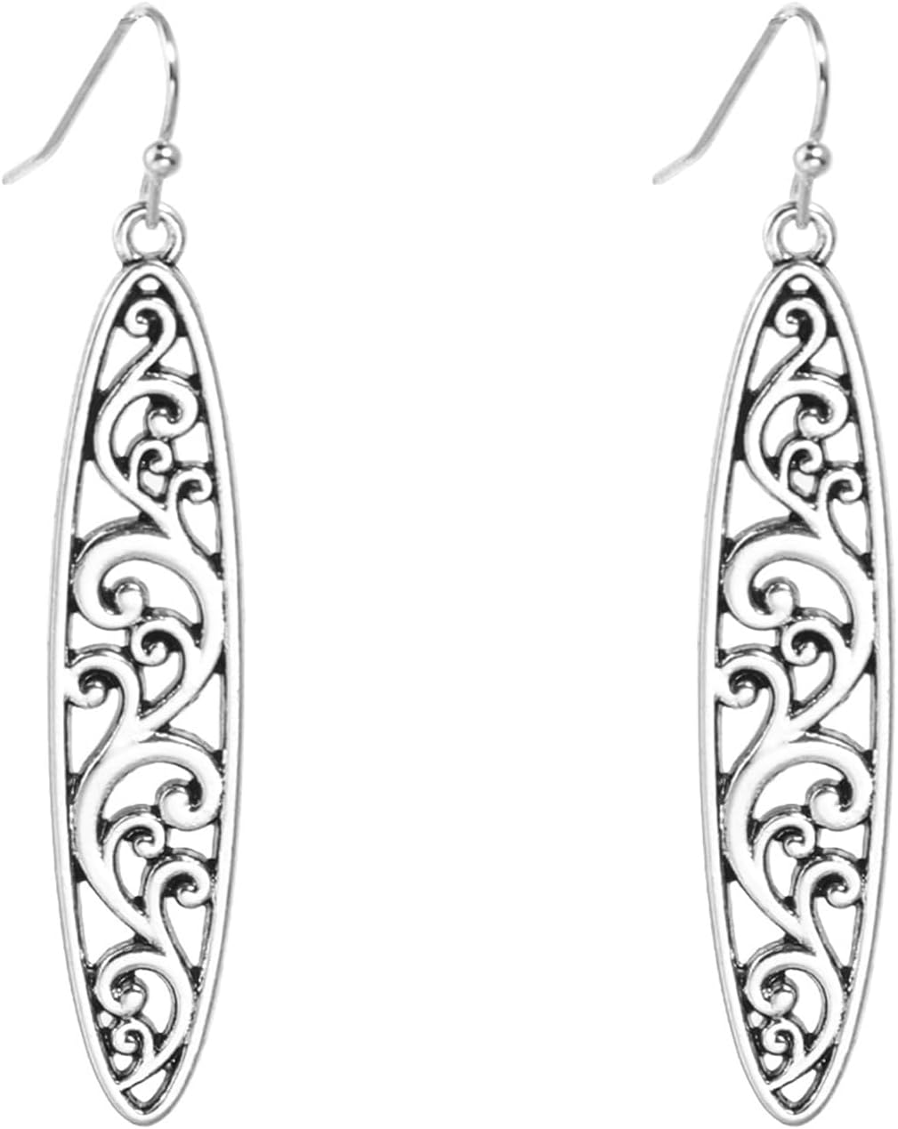 Boho Earrings Silver Earrings Filigree Earrings for Women Handmade Bohemian Trendy Ethnic Vintage Earrings Lightweight Filigree Geometric Teardrop Earrings