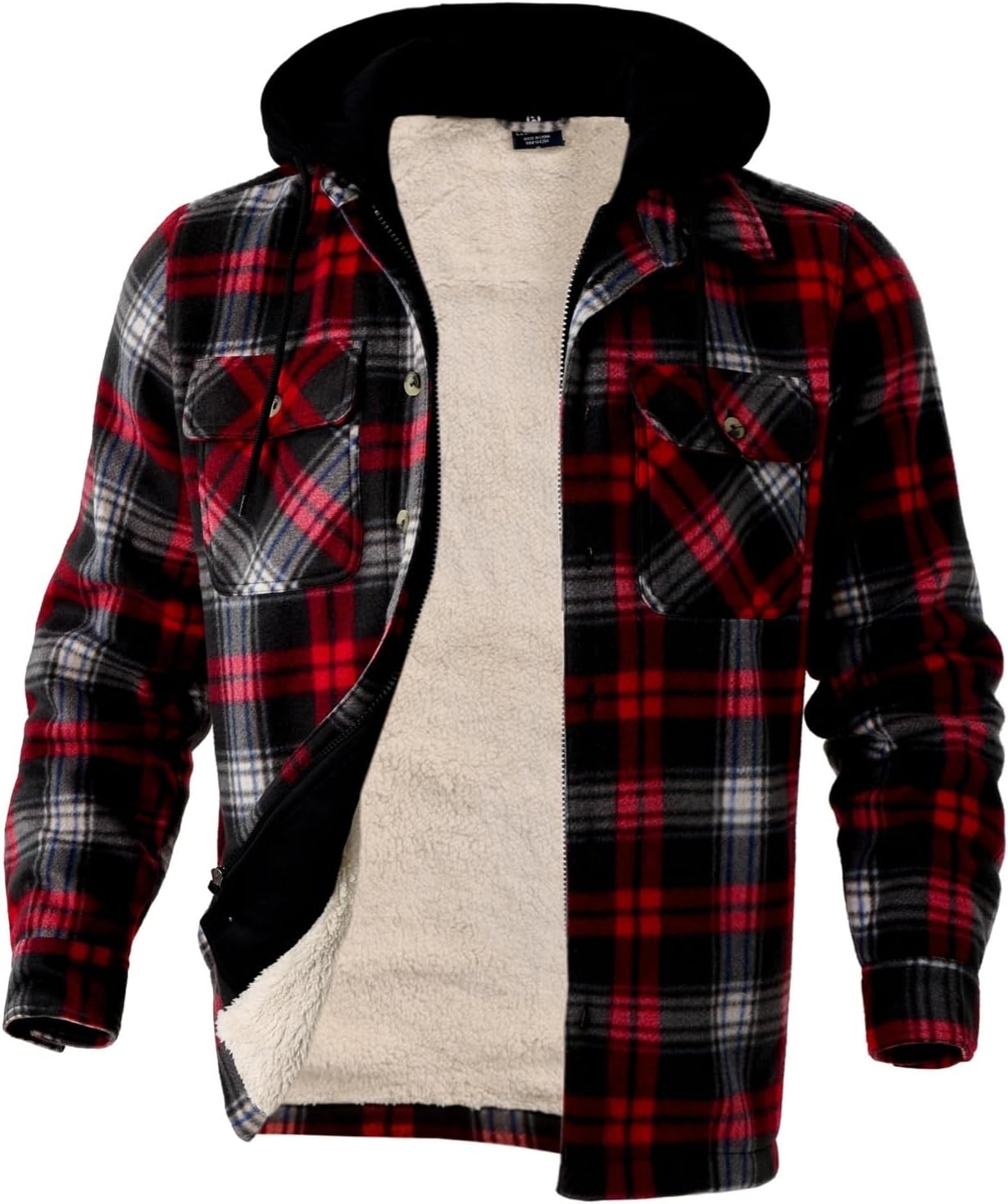 LeeHanTon Mens Flannel Jackets Sherpa Lined Fleece Zip Up Winter Warm Workout Plaid Sweatshirt with Hood