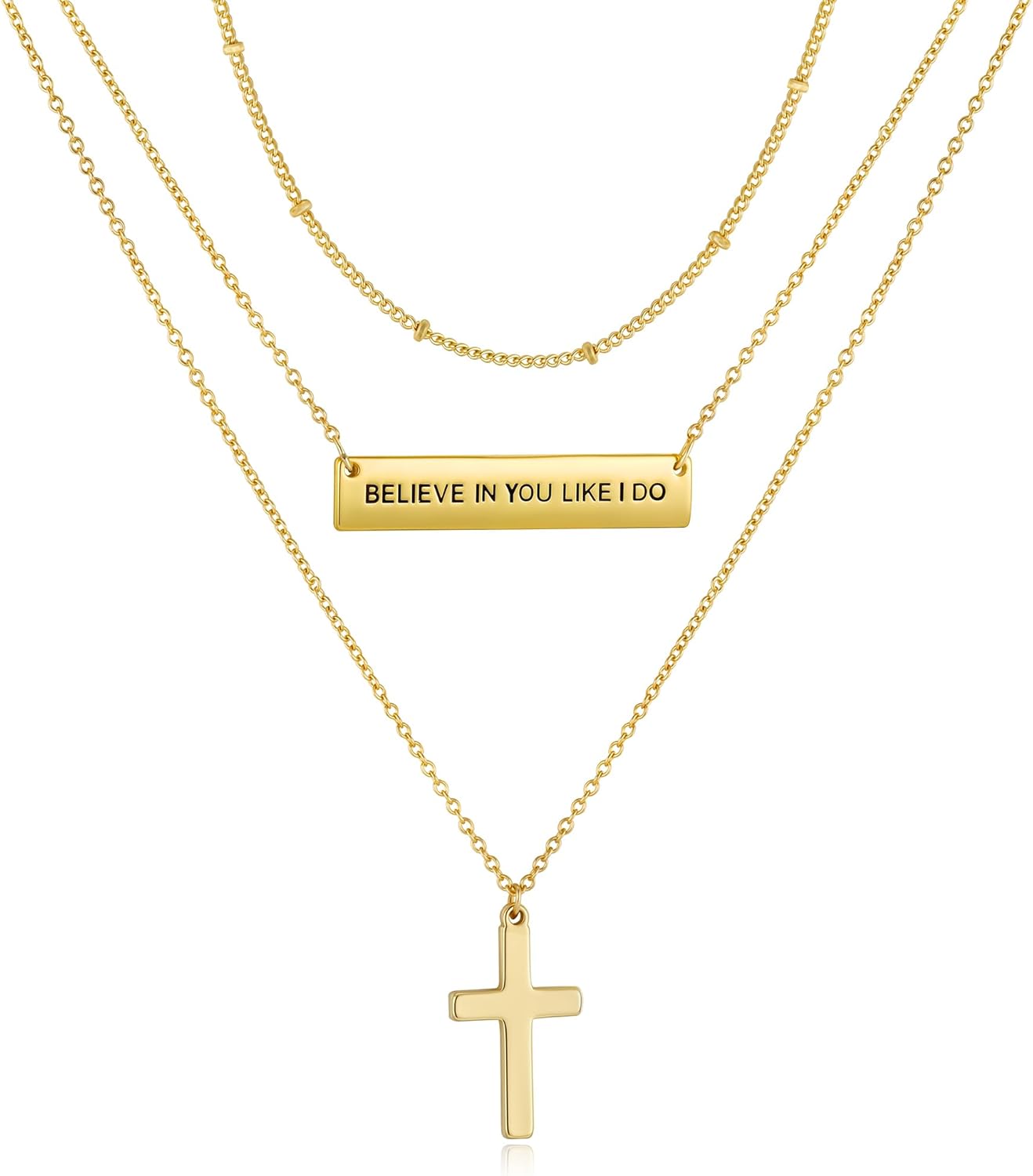 Layered Cross Bible Verse Necklaces,14K Gold Plated Christian Religious Confirmation Inspirational Jewelry Gifts