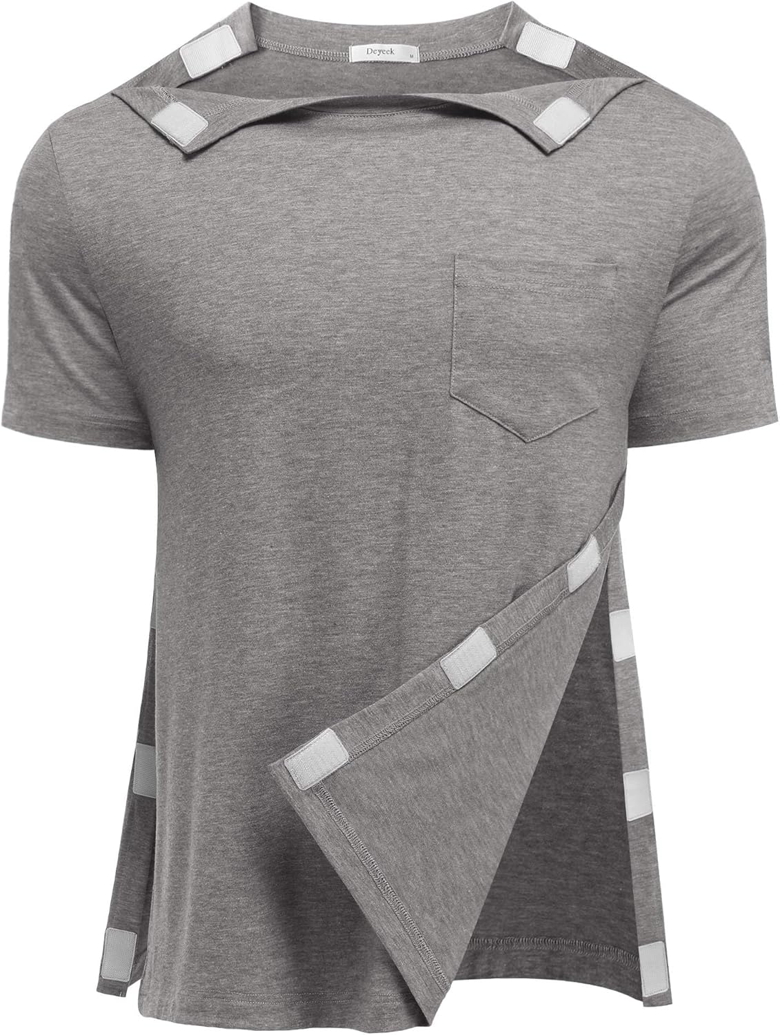 Deyeek Shoulder Post Surgery Recovery Shirts for Men Full Tear Away Short Sleeve T Shirt Adaptive Chemo Clothing