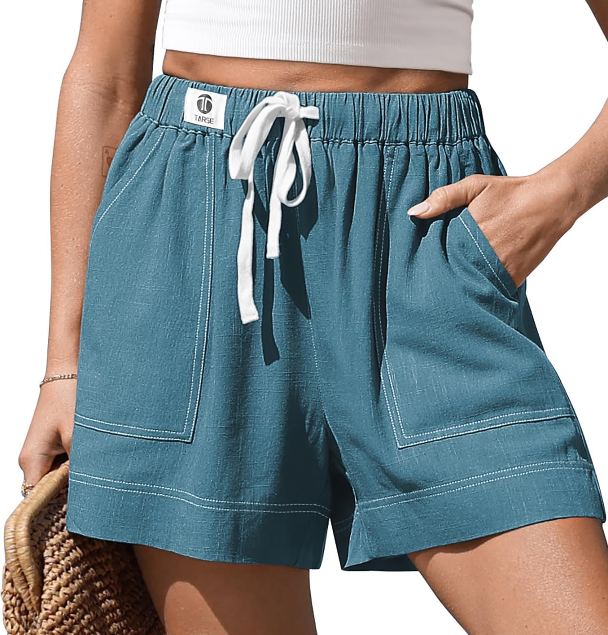 TARSE Women's Linen Casual Shorts Summer Drawstring High Waisted Wide Leg with Pockets Loose 2026 Cute Vacation Outfit