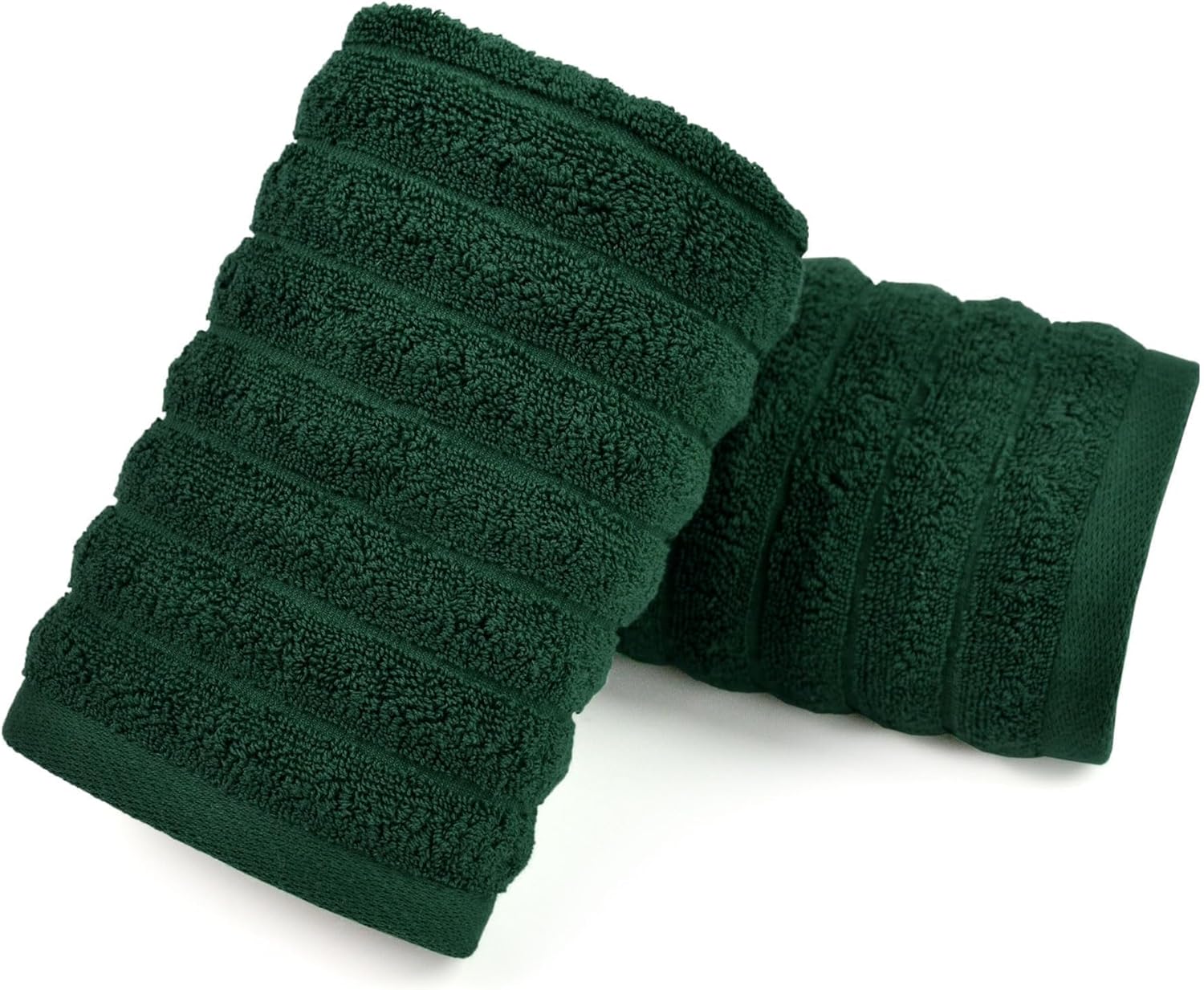 Jacquotha 2-Pack Hand Towels (Forest Green) Ribbed – Kitchen & Bathroom Premium Cotton Towels 13” x 29”, Soft and Quick Drying 480 GSM