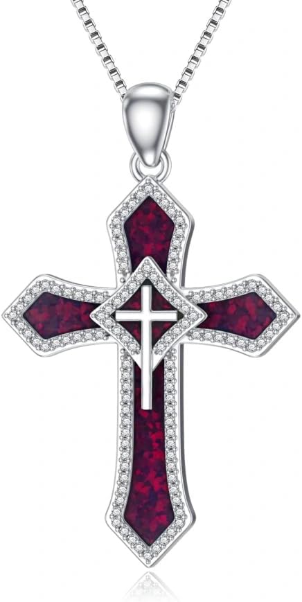 Opal Cross Necklace for Women S925 Sterling Silver Opal Cross Necklace Gift for Women Her