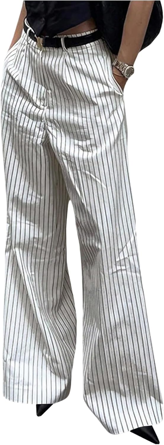 GORGLITTER Women's Striped Dress Pants Pinstripe Wide Leg Long Pants Baggy Business Casual Workout Trousers