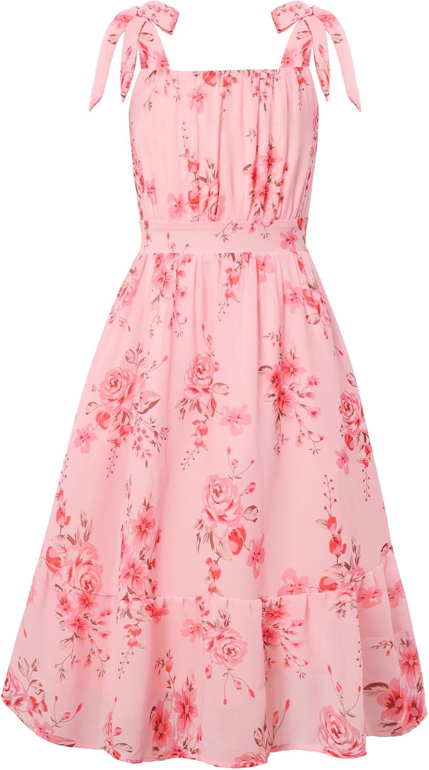 GRACE KARIN Girls Floral Chiffon Dress Summer Hawaiian Beach Vacation Party Wedding Birthday Sleeveless A-Line 7-14Y