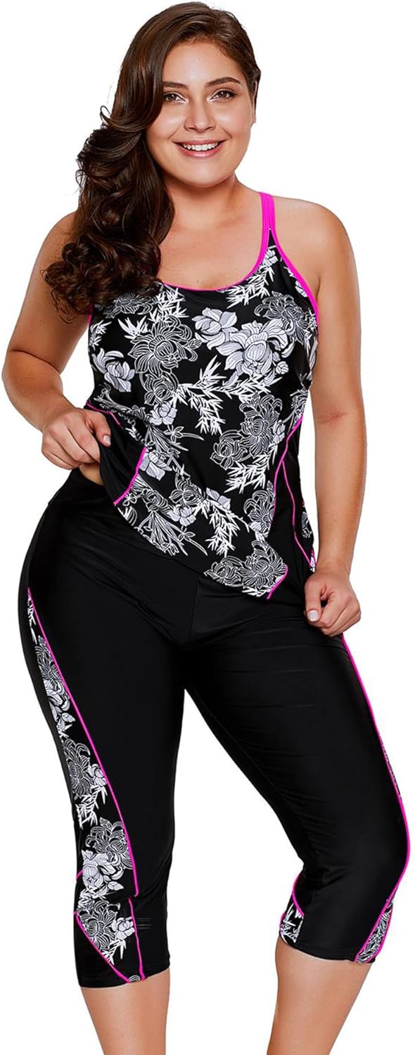 LALAGEN Womens Plus Size Swimsuits 2026 Modest Rash Guard Capris Tankini Bathing Suits Two Piece Bathing Suit Swimwear