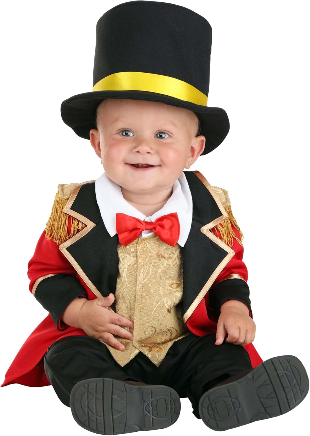 Dapper Ringmaster Costume for Infants, Red Circus Showman Jumpsuit with Hat Halloween Outfit