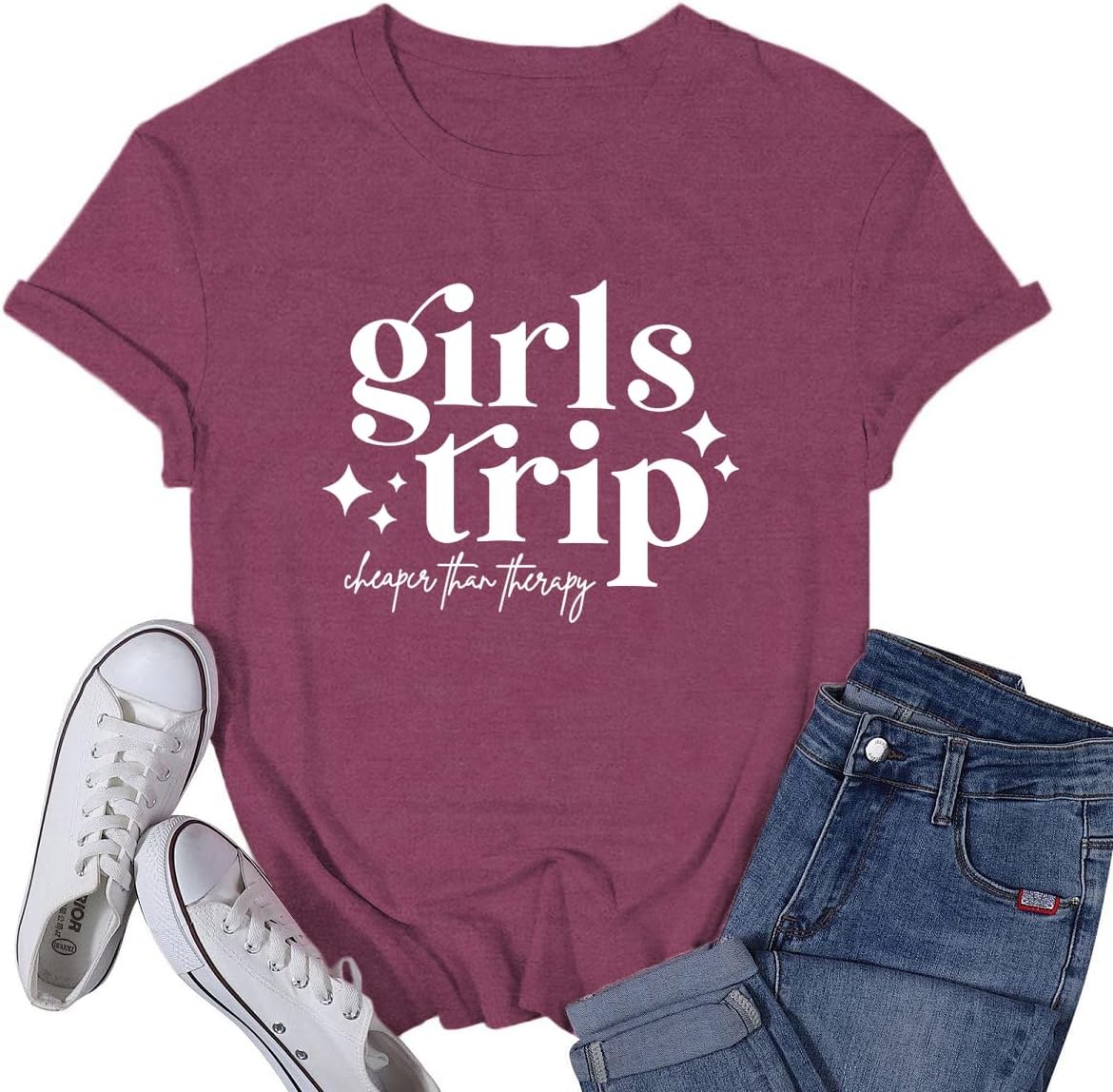 Girls Trip Shirts for Women Travel Besties Tshirt Trip Cheaper Than Therapy Tee Tops