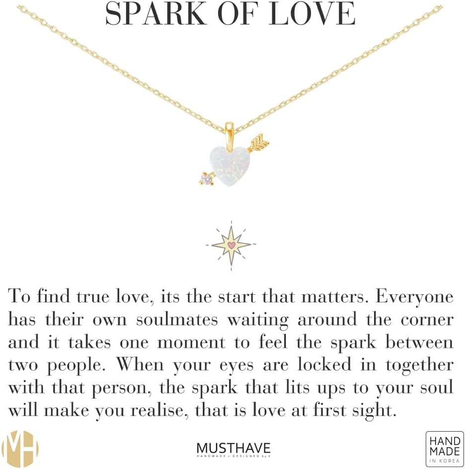 Opal Heart Arrow Necklace, MUSTHAVE 18K Gold Plated Opal Cupid Heart Necklace, Dainty Pendant with Cubic Zirconia, Minimal Romantic Jewelry for Women, Message Card, Cupid's Arrow, 16+2" Chain, Gift for Her (Yellow Gold)
