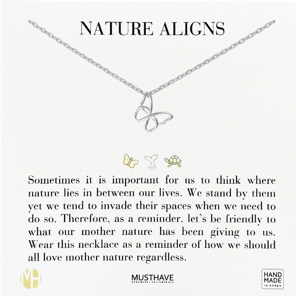 MUSTHAVE Simple Butterfly Necklace, 18K Gold Plated Minimal Line Art Pendant Jewelry for Women, Dainty Nature Inspired Chain, Korean Handmade Gift, Gift for Her, Message Card, 16+2 inch (White Gold)