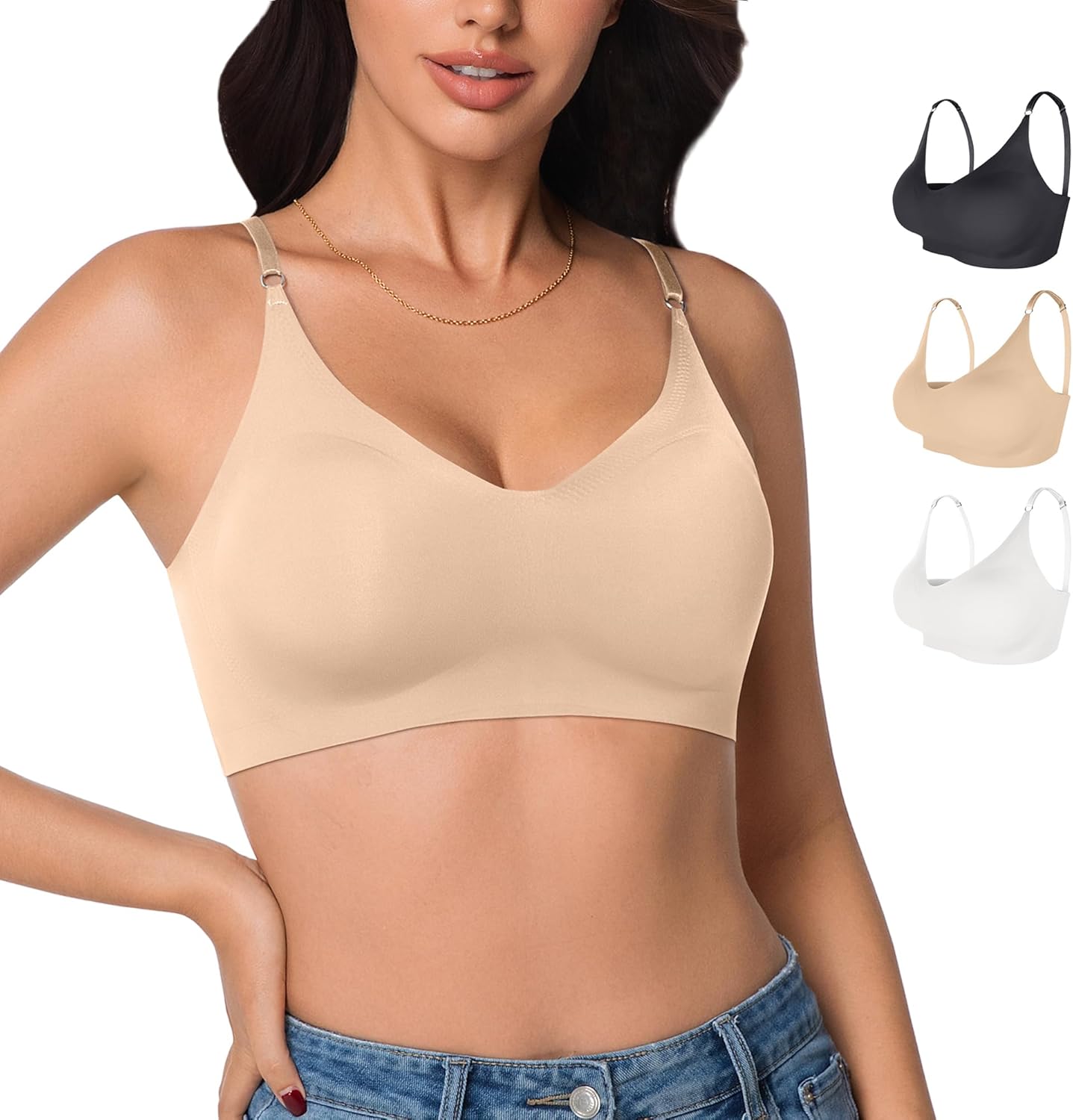 3 Pieces Wireless Seamless Bras for Women - Padded Sport Bras Comfortable Bralettes Soft Sleep Adjustable