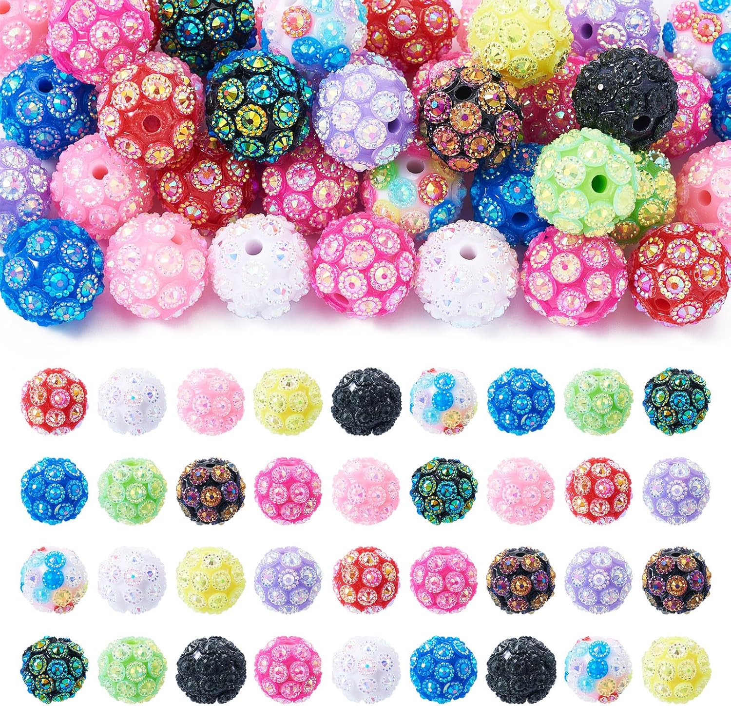 Beadthoven 40pcs Rhinestone Focal Beads for Pens, Fancy Crystal Acrylic Beads Glitter Sparkle Diamond Beads 16mm Chunky Bubblegum Beads for Jewelry Making Keychain Beaded Pens Lanyard DIY Supplies