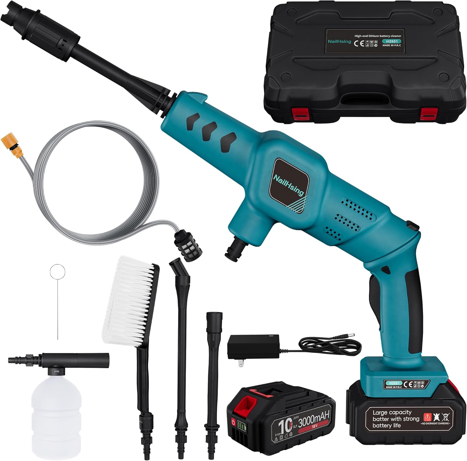 - [Game-Changer for Outdoor Cleaning] The NailHsing cordless portable pressure Washer redefines convenience with its powerful 380W pure copper motor, delivering up to 900 PSI of water pressure. Equipped with .one high-capacity batteries and a grab-and-go design, it lets you break free from outlets and water faucets—making outdoor cleaning easier than ever.