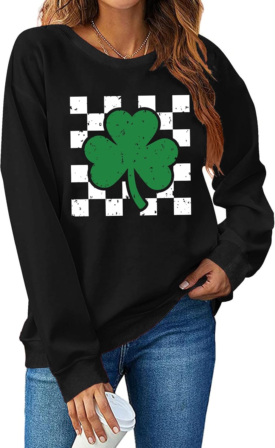 St Patricks Day Shirt for Women Lucky Shamrock Sweatshirt Saint Patricks Day Long Sleeve Top Clover Printed Tee
