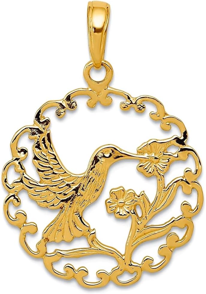 JewelryWeb 20mm 10k Solid Yellow Gold Hummingbird In Round Frame Pendant Necklace Pendant for Women