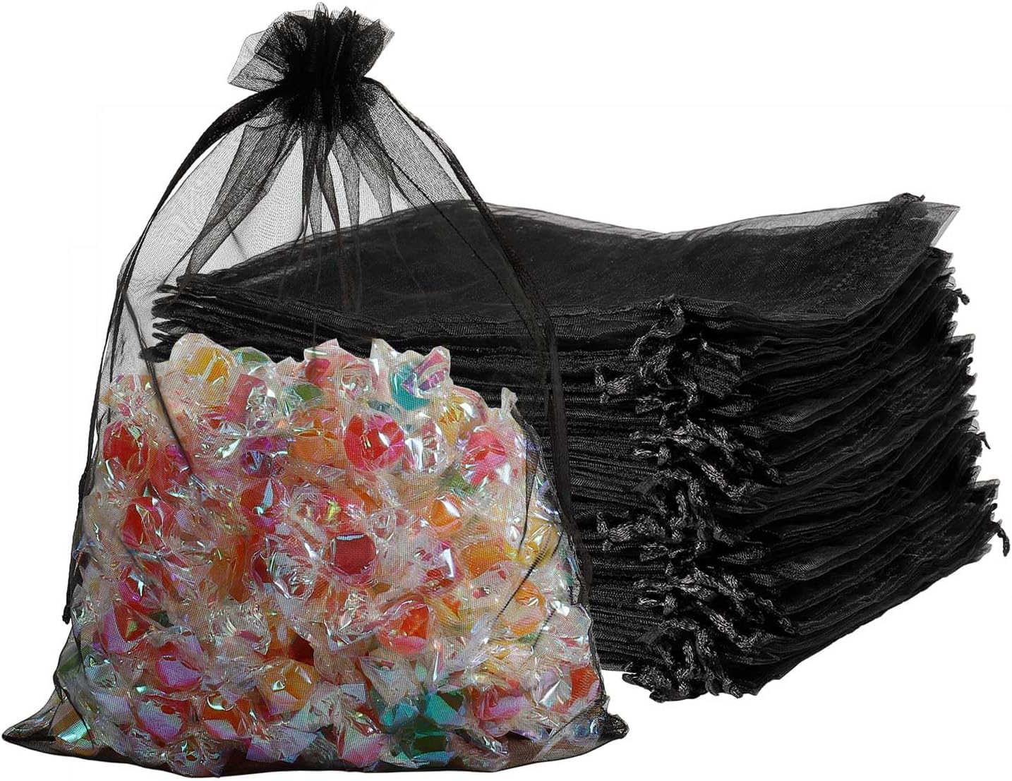 100pcs Organza Pouch Bag Drawstring 6"x9" 16x22cm Strong Gift Candy Bag Jewelry Party Wedding Favor (Black)