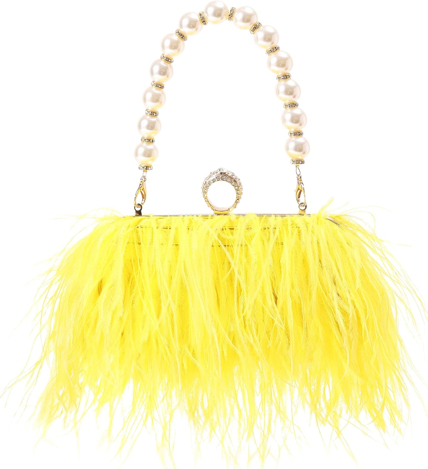 Women Real Natural Ostrich Feather Evening Bags Purses Clutch Vintage Banquet Handbag