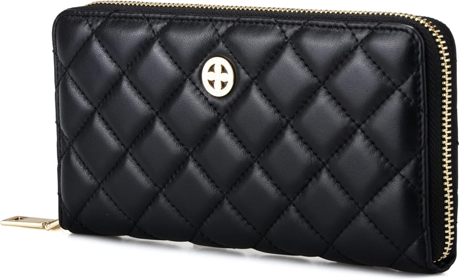 Luxury Black Quilted Leather Long Zipper Wallet Clutch Credit Card Holder Zip Around Wallet Coin Purse Business Card Holder Gift for Women Gift for Girl