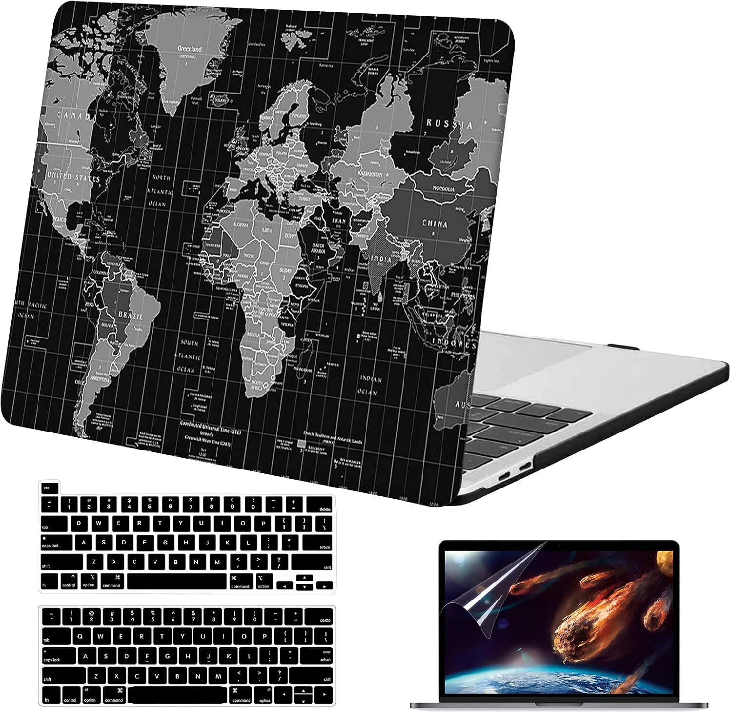 iLeadon for MacBook Pro 13 inch Case M2 2022, 2021, 2020-2016 Release A2338 M1/A2289/A2251/A2159/A1989/A1706/A1708, Plastic Hard Shell Case+Keyboard Cover+Screen Protector, Black World Map