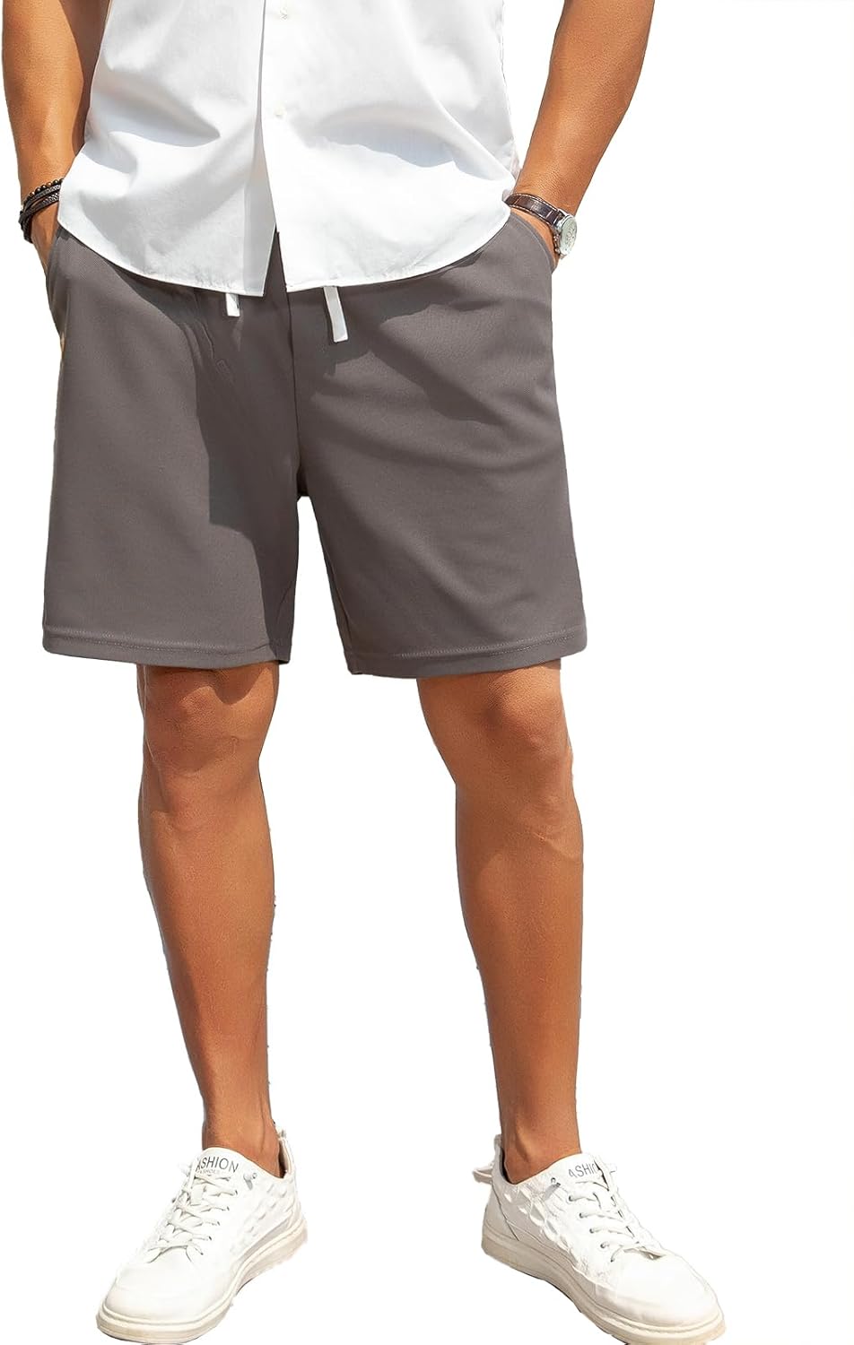 Men's 7 Inch Inseam Casual Shorts Elastic Waist Drawstring Lightweight Summer Shorts with Pockets