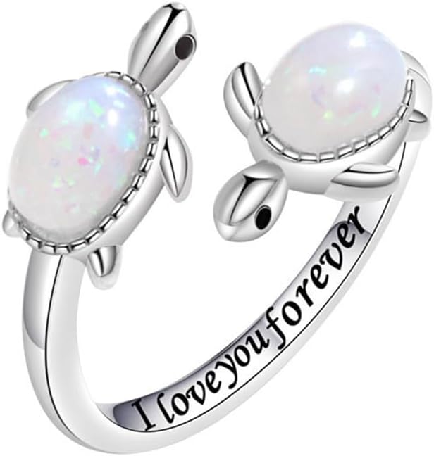 Opal Sea Turtle Ring Inspirational I Love You Forever Adjustable Open Nature Ocean Mother Daughter Ring Cute Tortoise Animal Lovely Little Jewelry Gifts for Women Girls Family Friendship Infinity