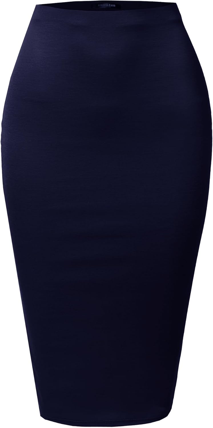 SSOULM Women's Floral Midi Pencil Skirt - Made in USA - Stretchy High Waisted Work Office Bodycon Skirts (Plus Size)