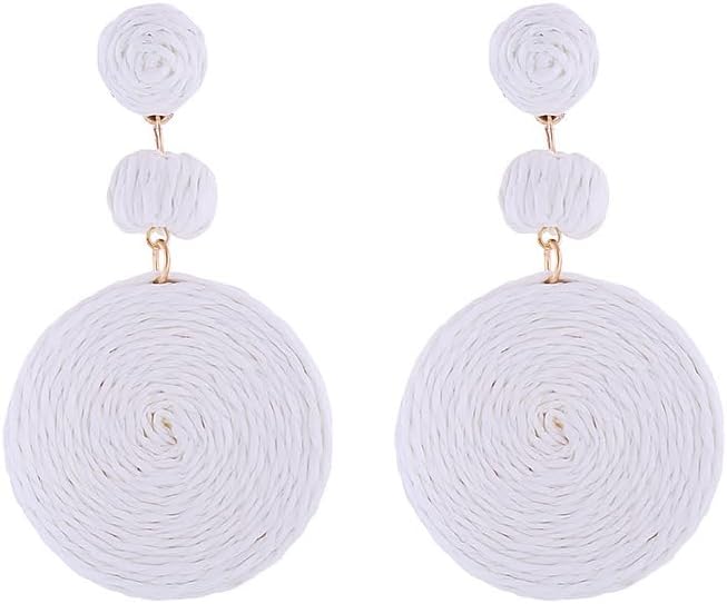 Boho Raffia Ball Earrings for Women, Handmade Statement Drop Earrings Straw Dangle Earrings Beach Vacation Jewelry