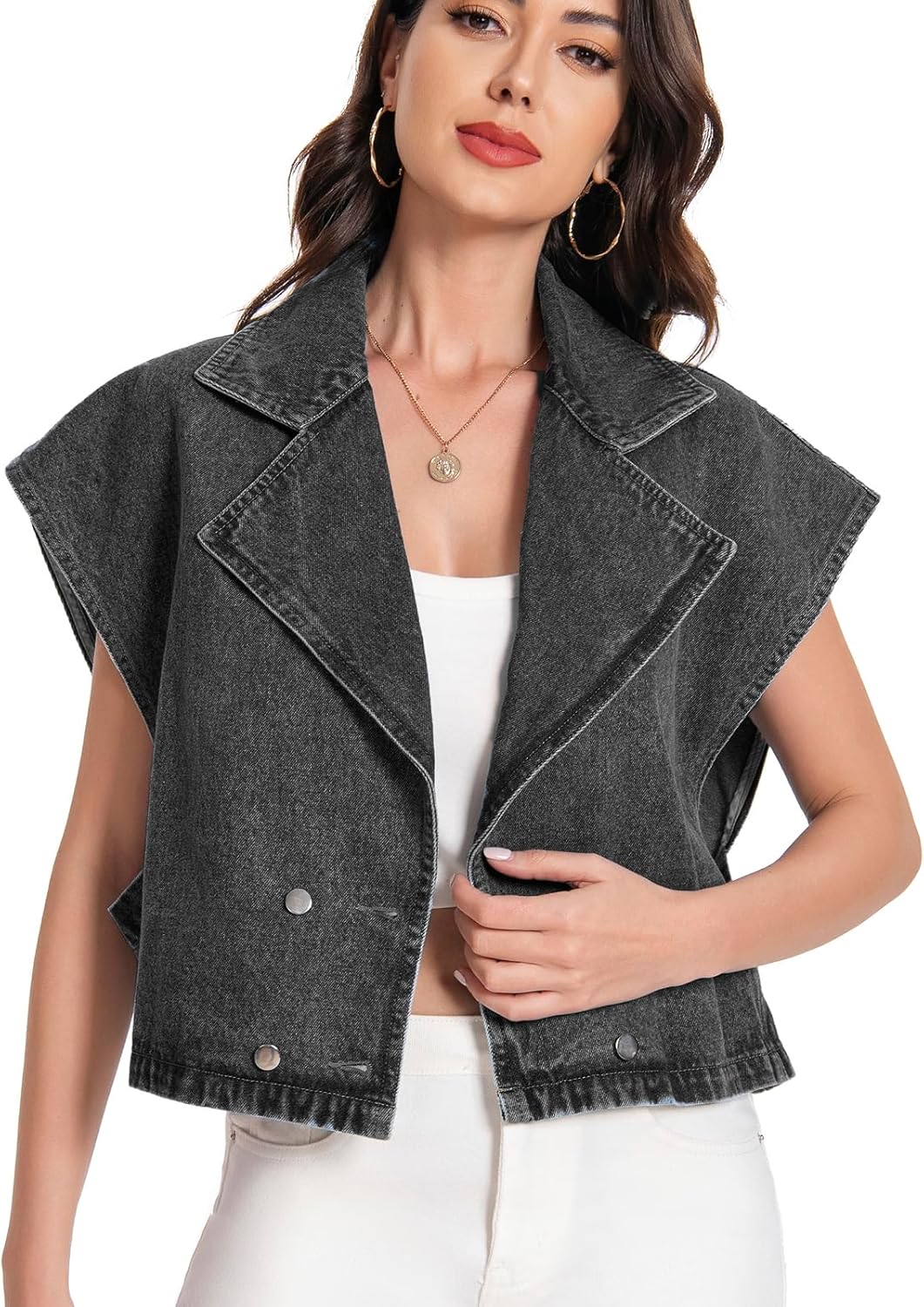 Mars Guard Women's Oversized Denim Vest Jean Cropped Casual Lightweight Jacket,Perfect for Spring Summer Outfits
