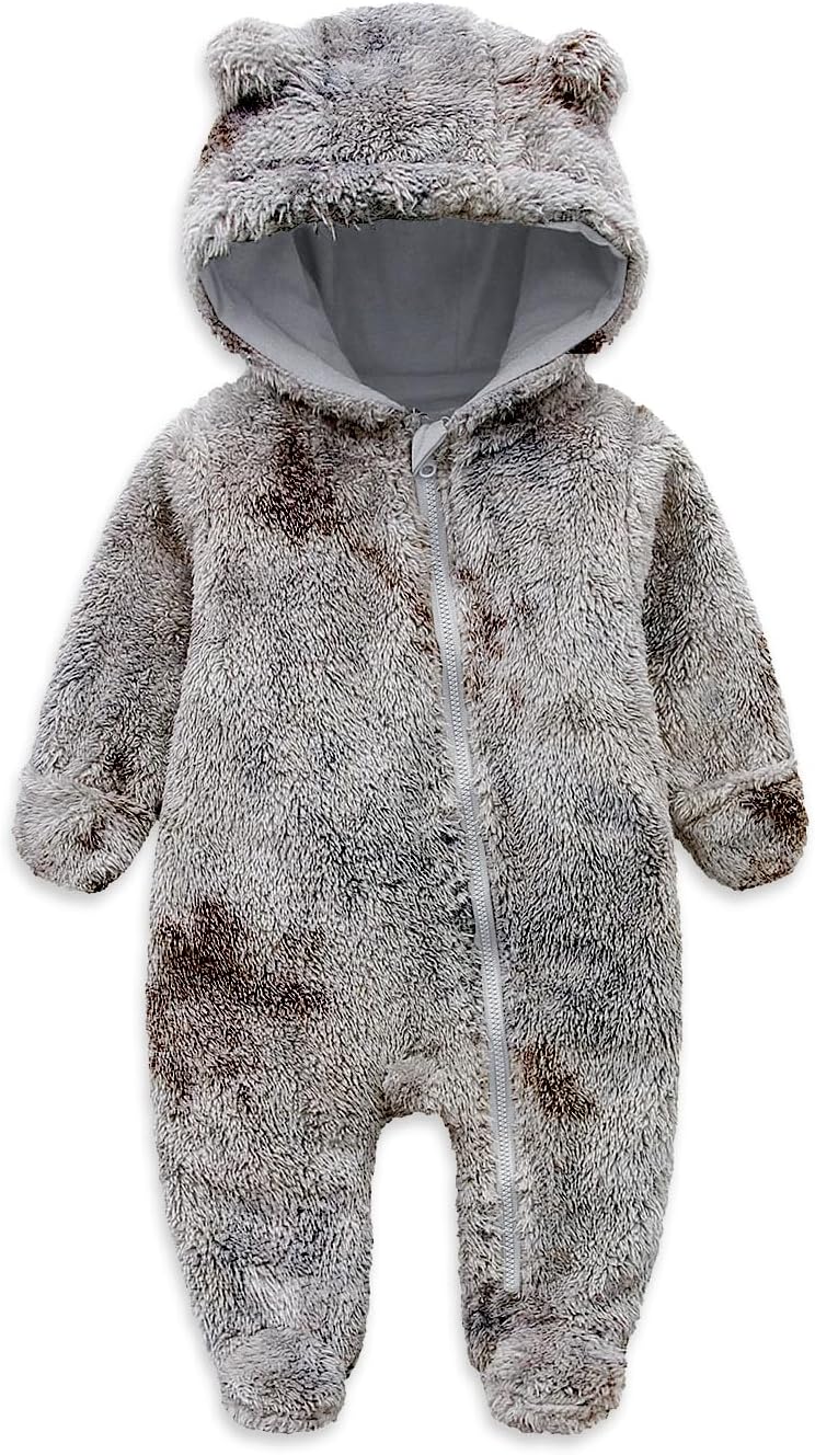 Jimonda Baby Tie Dye Snowsuit Winter Fleece Jumpsuit 0-18 Months, 100% Polyester Hooded Romper with Bear Ears for Infant