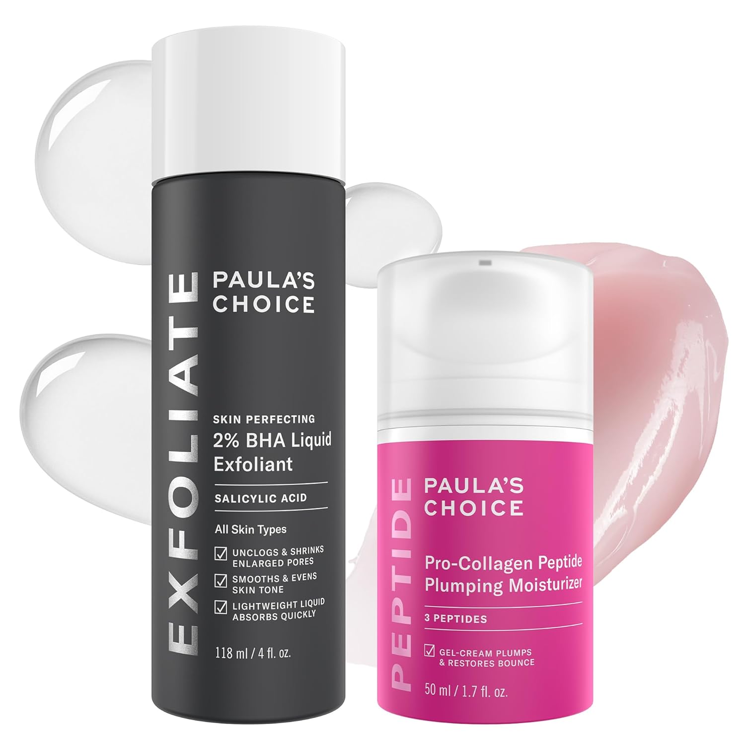 Paula's Choice SKIN PERFECTING 2% BHA Liquid Exfoliant, Salicylic Acid Facial Exfoliator for Enlarged Pores & Pro-Collagen Peptide Plumping Moisturizer, Daily Gel-Cream for Deep Lightweight Hydration