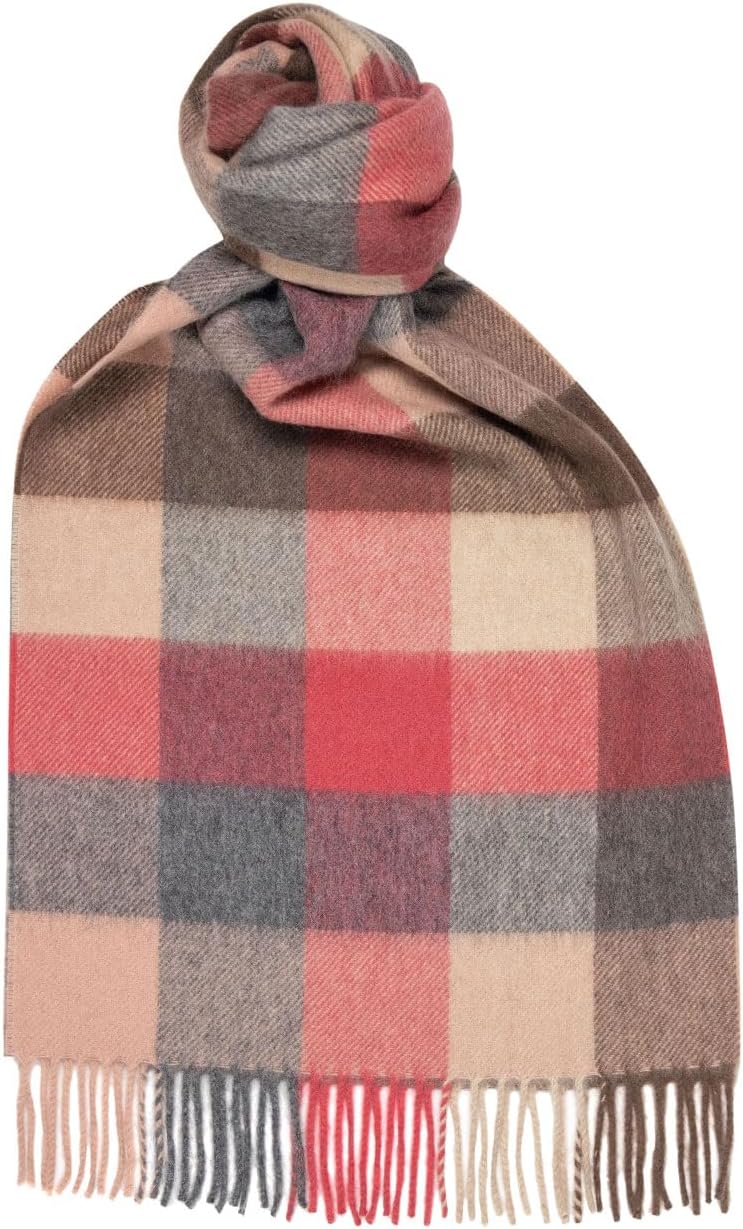 100% Cashmere Scarf 70.8X11.8IN Classic Plaid Brushed Pink - Made In Scotland