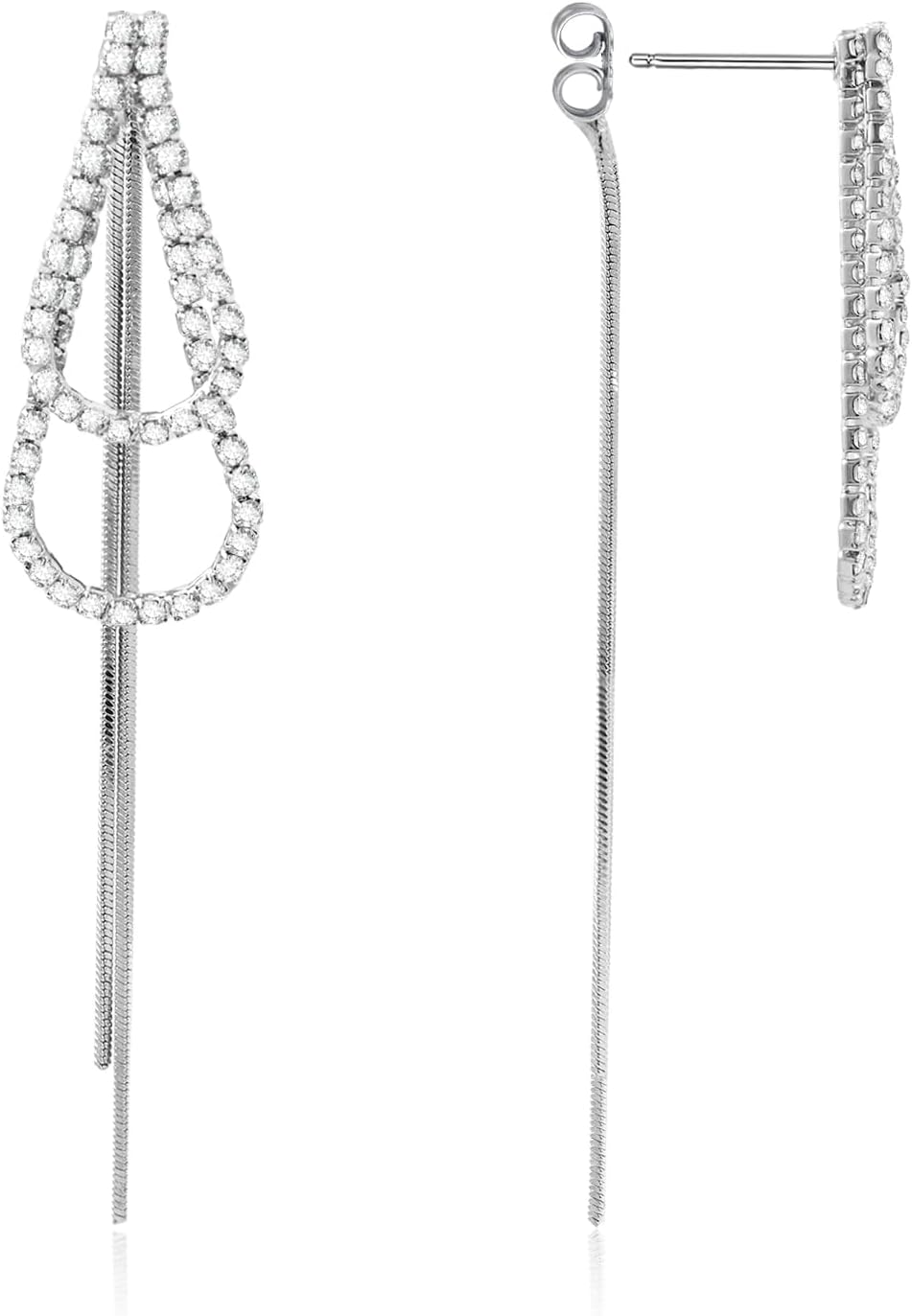 Large Silver Teardrop Dangle Earrings for Women Tassel with Cubic Zirconia Long Chain Dangling Front Back Earrings for Party