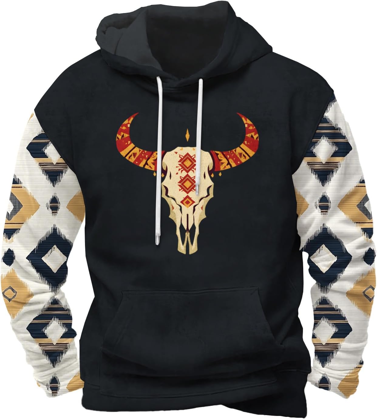 Classic Graphic Print Hooded Sweatshirt for Men Casual Drop Shoulder Long Sleeve Hoodie Loose Fit Ribbed Cuffs Fashion Pullover for Fall