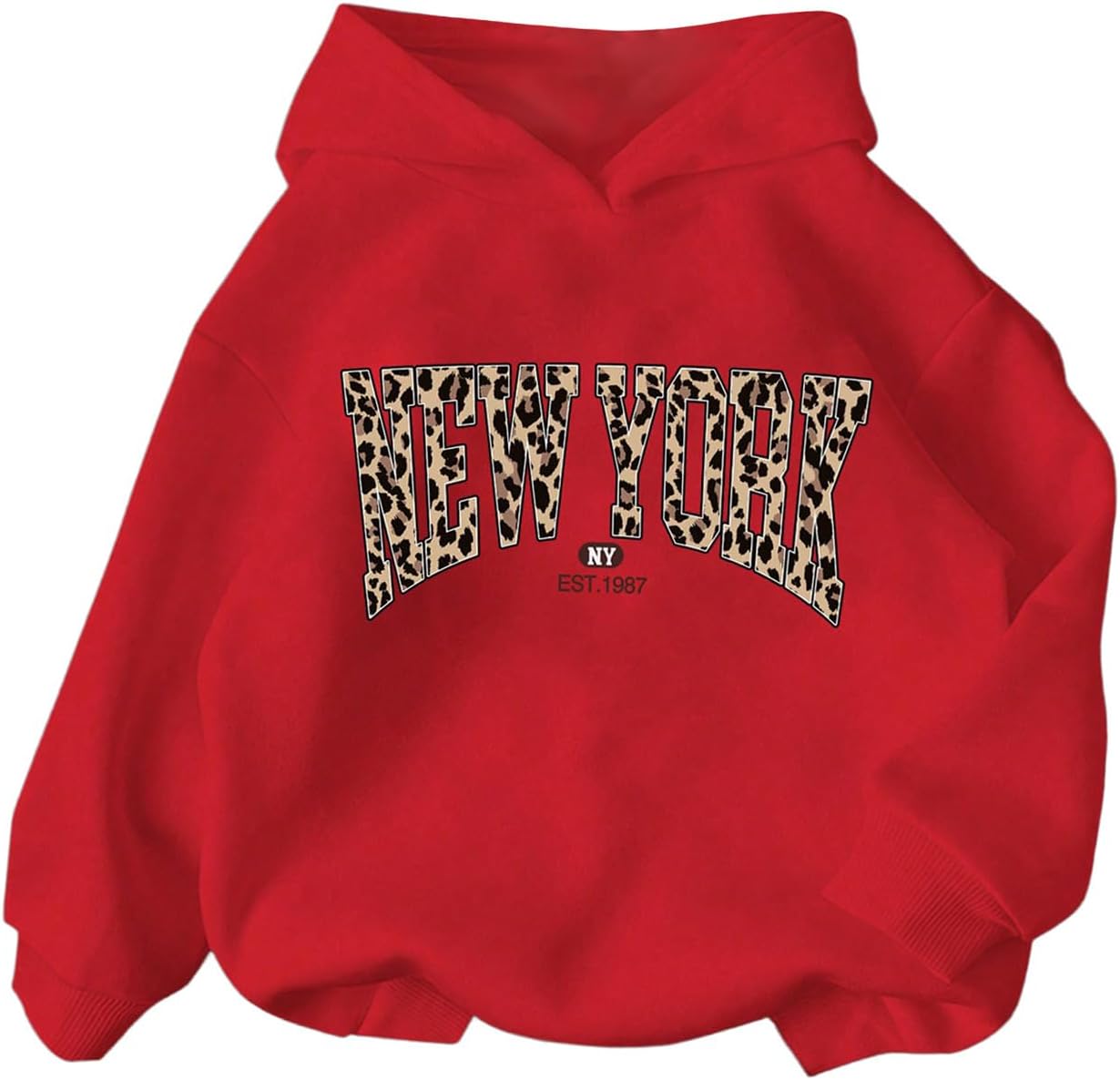 Women's Graphic Cheetah Letter Print Hoodie Preppy Long Sleeve Oversized Sweatshirts Hooded Pullover Tops