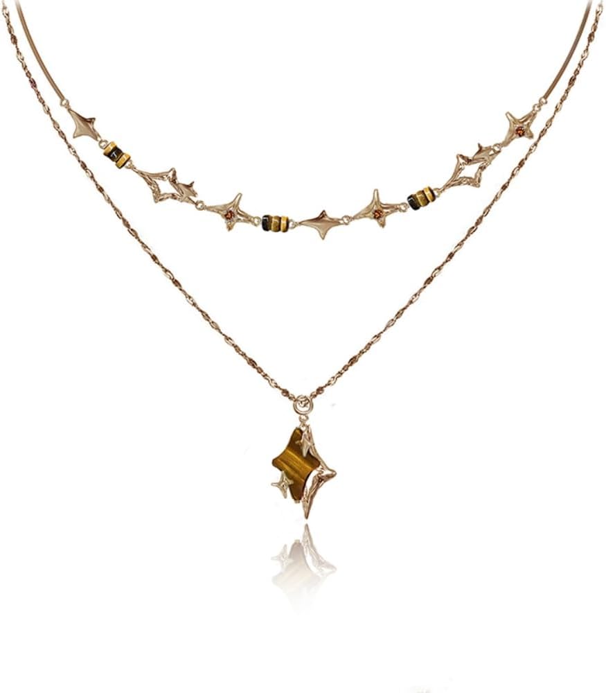 Retro Style Star Pendant Necklace Personalized Star Double Layer Necklace Exquisite Geometric accessories Fashion Women's accessories M2539