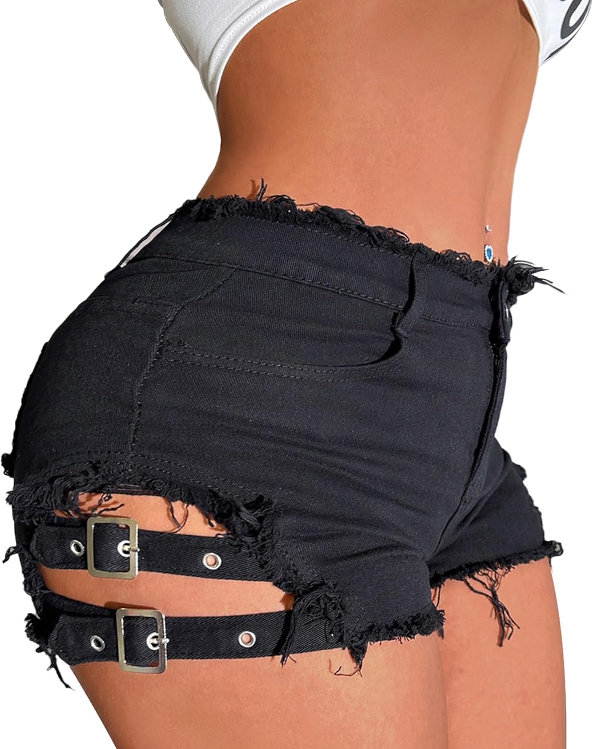 MUYDZ Women Cut Off Destroyed Bandage High Rise Denim Short Jean Hot Pants
