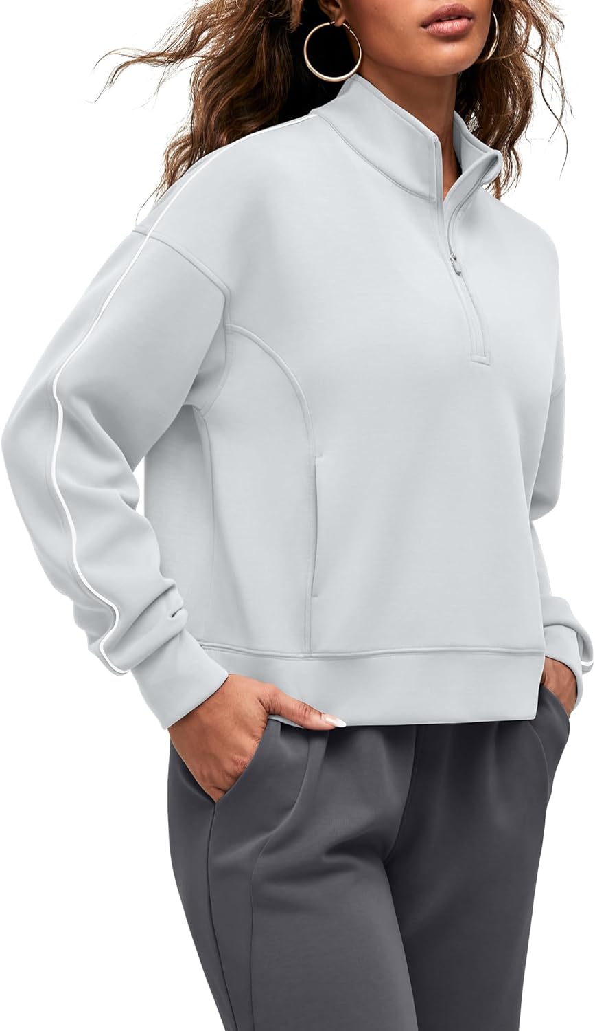 G4Free Smoofit Modal Soft Women's Half-Zip Sweatshirts Pullover Mock Neck Casual Tops with Pockets