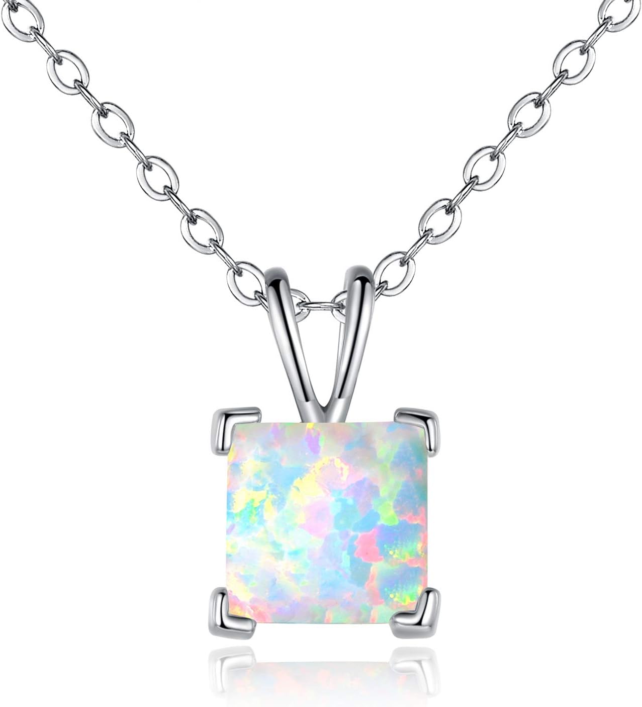 VOLUKA Created Opal/Amethyst/Mystic Topaz Pendant Necklace for Women,18K White/Rose Gold Plated Chain Wedding Engagement Jewelry Gift
