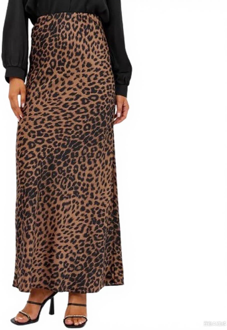 Women's Slik Satin Leopard Maxi Skirt High Waist Wrap Elastic Waisted Long Skirt